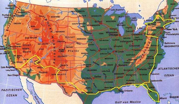 Endlich war es soweit: Vom 8. April bis 20. Mai haben wir ein RV (Motorhome) gebucht. Start unserer Tour wird in San Francisco sein und der Zielort ist dann New York, eine Einwegreise also (damals in dieser Richtung ohne Aufpreis!) Eine Route hatten wir im voraus in etwa abgesprochen, ob wir sie jedoch wegen der vielen Miles bewältigen können wissen wir nicht. Von unseren bisherigen Reisen war das die schönste, was mit Sicherheit verschiedene Gründe hatte: Die Dauer der Reise, der Umstand, daß es die erste USA-Reise war und mit Sicherheit ist es auch die glücklichste Routenführung gewesen. Es wurde auch auf langen Strecken selten langweilig, was im mittleren Westen quasi Norm ist.