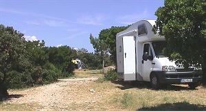 erobern. Die Entscheidung den Platz „Slatina“ wieder zu verlassen, fällt schnell und nach dem Frühstück wird „mobil gemacht“. Wir fahren etwa 25km zurück in nördlicher Richtung Cres und zum Platz „Camp Kovacine“. Auch dort wird die CCI-Card akzeptiert und bringt 10% Ermäßigung. Wir können uns selbst einen Stellplatz suchen und finden auch schnell einen der fast eben und mit etwas feinem Kies aufgefüllt ist. Nach dem Aufstellen des RVs wird erst mal tief durchgeatmet.Wir haben zwar keinen Traumplatz von dem aus man das Meer sieht, aber immerhin sind die sanitären Anlagen einwandfrei und es gibt auch viele schattige Plätze. Chap, unser Hund, fühlt sich offensichtlich auch wohler und säuft endlich Riesenmengen an Wasser und frißt sogar ordentlich. Er spürt wohl, das es nicht gleich wieder weiter geht. Am Abend machen wir einen langen Spaziergang auf dem betonierten Uferweg entlang und kommen dabei fast bis an den Ortsrand von Cres. Auf dem Weg kommen wir an einigen Restaurants, Bars, Bootsverleihen und einer Art Spielhalle vorbei. Dort ist aber so gut wie nichts los, die |