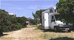21. Juni 2004 Ausgeschlafen! Zum Frühstück gibt’s zäh-weiche Teiglinge die entfernt an Brötchen erinnern. Aber darüber will ich nicht meckern, hauptsächlich geht uns der Platz auf die Nerven. Um am Tisch sitzen zu können, stellen wir diesen ein ganzes Stück weit vom RV auf, überall anders ist der Boden zu felsig und uneben. |