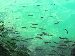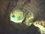 | Wir fahren noch schnell in einen SPAR- Supermarkt in der Nähe um etwas zum Abendessen zu kaufen und gleich nebenan auch zu tanken. (Eurodiesel 175,20 SIT/Liter = 73,3 Eurocent) Zurück am Platz reicht die Zeit gerade noch zu einem Imbiß und einem Espresso, dann steht die nächste Höhlenbesichtigung an. Direkt am Campingplatz ist der Eingang zur „Pivka Jama“ die man über eine steile Treppe hinunter in einen Abgrund erreicht, der mit einem hohen Gitterzaun sehr an den 2.Teil von Jurassic Park erinnert. Bei dieser Tour die etwa eine Stunde dauert und 7,10Euro pro Person kostet, erfahren wir viel mehr Details weil die Gruppe nur aus sechs Leuten besteht. Die Höhle ist nicht so spektakulär wie die jüngere Postojnska, sie ist viel älter und hat nicht so viele neue Tropfsteine. Dafür hat sich ein Fluß durch die Höhle gefressen und dadurch ist es einfach eine „ganz andere Höhle“. Der Führer gibt sich viel Mühe und als wir ihm am Ende noch ein Trinkgeld zustecken, freut er sich riesig. Keuchend erklimmen wir nach der kühlen Höhlenluft (ca. 6° C) die Treppe am Ausgang wo die Luft nach jeder Stufe dicker wird und landen nach einem kurzem Weg direkt neben unserem RV. Was jetzt folgt, ist abschlaffen, Tagebuch schreiben, Essen zubereiten, etwas spielen oder lesen, den Hund ärgern (der bisher außerordentlich brav war) und Pläne für den nächsten Tag schmieden. Wir wollen morgen weiter auf die Insel Cres (Kroatien) fahren und hoffen da auf mehr Sommerklima und weniger schwüles Gewitterwetter. Geregnet hat es aber nur gestern, heute ziehen nur oft dunkle Wolken vorüber und drohen ein wenig. Achja, den Campingplatz findet man recht einfach wenn man an dem Eingang der großen Höhle und den ganzen Parkplätzen vorüberfährt. Stur auf der Straße bleiben und den Ort „Veliki Otok“ durchfahren. Ein Stück weiter auf der Straße gibt’s dann unübersehbare Hinweisschilder. Also rechts abbiegen und wieder stur der Straße bis zum Platzeingang folgen. | ||