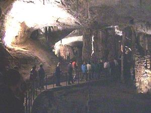 19. Juni 2004 Gleich nach dem Frühstück fahren wir zur Postojnska Jama die etwa 4km entfernt ist. Für Parkgebühren werden erst mal 700 SIT fällig, etwa 3€. Der Eintritt für die Höhle beträgt pro Person 3390 SIT (ca. 14€). Etwa eine halbe Stunde warten wir bis zum Einlaß, dann strömen Unmengen Menschen hinein und besetzen die unglaublich langen Wagenschlangen der Höhlenbahnen. Dann geht’s auch schon los, in ziemlich zügigem Tempo rattert die Bahn durch enge Tunnelröhren in denen man besser den Kopf etwas einzieht und durch einige große Grotten. Nach etwa 10Minuten erreicht man die unterirdische Station und eine große Halle in der sich die Menschenmassen dann nach Sprachen sortiert an den Startpunkten der Führungen versammeln. Geboten werden Führungen in Slowenisch, Deutsch, Englisch, Italienisch, manchmal gibt es auch die Führung in Französisch. Viel erklärt wurde nicht, bis auf die üblichen Begriffserklärungen was nun Stalagmiten oder Stalaktiten sind und wie langsam diese wachsen. Fotografieren und Videografieren ist nicht erlaubt, es kümmert sich aber niemand darum. Ebenfalls scheint es niemanden zu kümmern, das alle erreichbaren Tropfsteine angegrabscht, Geldmünzen in Wasserlachen geworfen werden usw. Man hat sicher schon resigniert und weiß auch, daß es noch genug andere, unberührte Plätze in den Höhlen gibt. Drei oder viermal gibt es einen Halt mit Erklärungen aber bei den vielen Leuten hören die letzten nichts davon und in unserer Gruppe sind auch noch einige Kinder die nur nerven und drängeln, in die Augen „fotoblitzen“, kurz; die man besser mitsamt den desinteressierten dafür aber reichlich nach Tabak und Alk stinkenden Eltern den Höhlenbären überlassen sollte. Nach etwa 90 Minuten sind wir wieder draußen und atmen feuchtwarme Luft. Die Höhle selbst ist aber absolut sehenswert - und wir kennen wirklich eine Menge Schauhöhlen! Diese ist die Zweitgrößte der Welt, in der größten, den Mammoth-Caves in den USA waren wir ja schon früher mal. Man sollte mehr aus der Postonja Jama machen indem man etwas weniger macht - vielleicht!? |