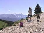 | Wir beschließen, einen Ausflug zur Villacher Alpe zu machen. Weil bei Villach ein Tunnelstück zwecks Renovierung gesperrt ist, geraten wir zwangsläufig in den dort üblichen Rückstau. Die „Villacher Alpenstraße“ ist eine 16,5km Mautstraße und mit einer Gebühr von stolzen 13 Euro haben wir auch ein kleines Stück davon "gekauft". Auf dem Weg nach oben gibt es verschiedene Parkplätze an Aussichtspunkten oder einem „Alpengarten“. Wir halten zunächst nur auf einem der Plätze denn wir wollen erst mal zum Ende der Straße in 1732m Höhe. Dort angekommen parken auf einem Stückchen Grünstreifen neben den überfüllten Parkplätzen. In dem grasigen Gelände rund um die Gaststätte | ![]() |