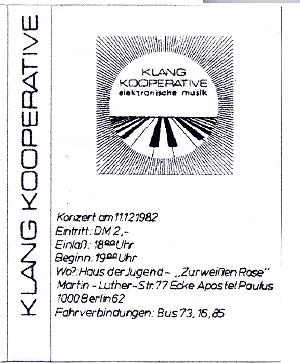Klang Kooperative Berlin - Konzertmitschnitt MC (1982) Klang Kooperative - Konzert 1982 - 01 - Disco Drums Klang Kooperative - Konzert 1982 - 02 - Kurzes Klang Kooperative - Konzert 1982 - 03 - Ceba Klang Kooperative - Konzert 1982 - 04 - Fingerspiel Klang Kooperative - Konzert 1982 - 05 - 5-Ton Klang Kooperative - Konzert 1982 - 06 - Punk-Klassik Klang