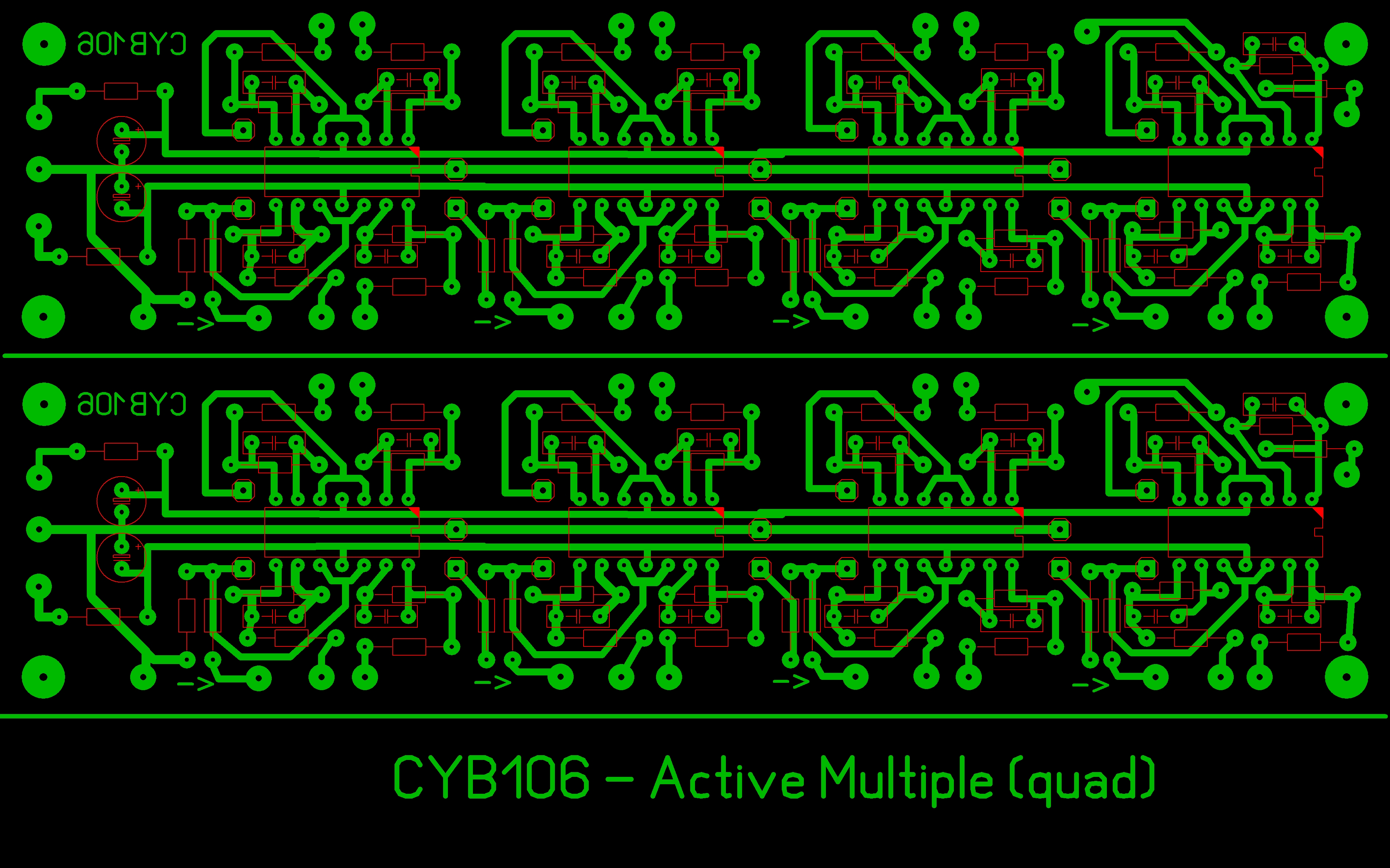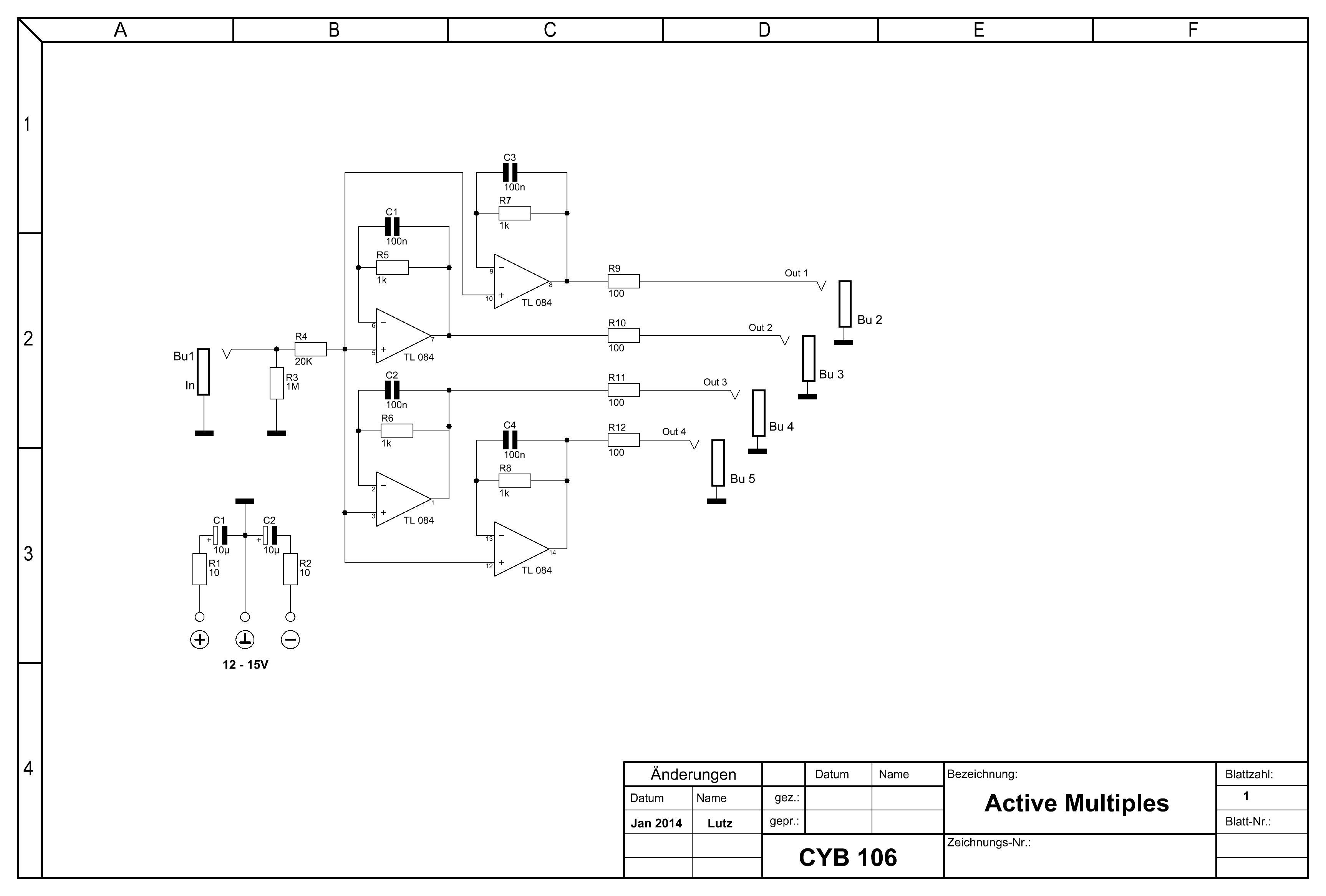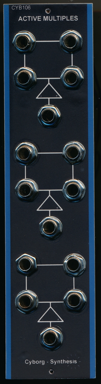 Bei den "aktiven Multiples" handelt es sich um Steuerspannungs-Verteiler die zum Einsatz kommen wenn eine Quelle auf mehrere Ziele verteilt werden soll ohne dass es dabei "Nebenwirkungen" gibt. Man kennt das auch unter der Bezeichnung "gepufferte Multiples", "Buffered Multiples" oder "VC-Distributor" Da ich kein Elektronik-Entwickler-Crack