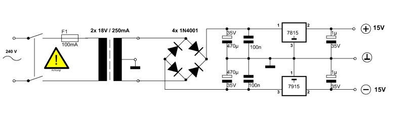 3) Netzteil mit symmetrischer Spannung ca. 2x 1 Ampere