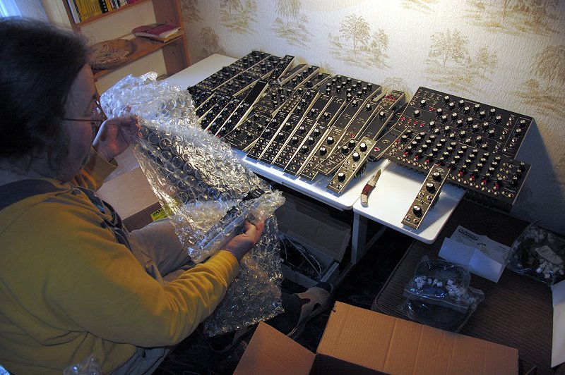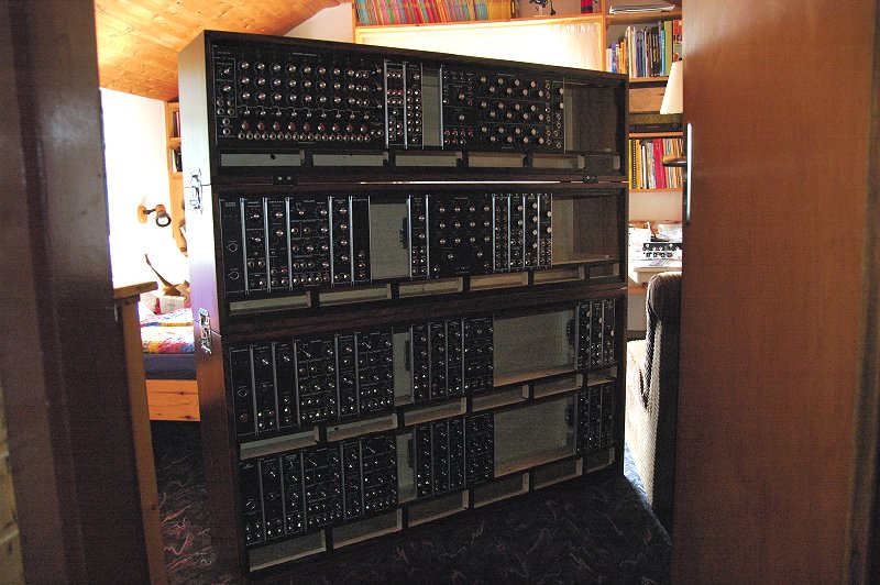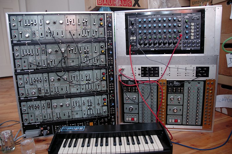 Kapitel 1: Schluss mit den Kompromissen! Nach dem Reinfall mit den MSS2000 Baugruppen der Firma Helmstedt, hatte ich schon aufgegeben, irgendwie soll es wohl nicht sein, dass ich wieder zu einem bezahlbaren Modularsystem komme.. Ich weiß nicht mehr genau, wie es dann doch wieder anfing, es war wohl das Synthesizer-Forum (www.sequencer.de) das ich nach jahrelanger Abstinenz wieder öfter las. Dort traf ich dann vor allem auch auf "Bernie" (Alien-Project), der auch zu den "Voll-Verrückten" gehört, zu denen ich mich ja auch ein wenig zähle. Mit ihm hatte ich schon früher mal längere Telefonate geführt und ein wenig gefachsimpelt. Er war es dann, der mein ehemaliges, geliebtes Roland System 100 bei Ebay davor rettete, ins Land der Elche verkauft zu werden, er war es, der es dann an einen (Auch-Verrückten) in Berlin weiterverkaufte und er war es, der mir den letzten Schubs gab damit ich wieder in die Spur kam. Danke Bernie! Ich startete dann eine kleine Deutschland-Rundfahrt um einige Synthesizer-Enthusiasten zu besuchen und mir deren Systeme anzusehen und micht mit denen über ihre Erfahrungen zu unterhalten. Ich hasse es, sowas am Telefon zu machen und ausserdem war ein für mich wichtiges Ziel, der Mensch da in Berlin, der mein altes Roland hatte und das ich gerne noch einmal sehen wollte. Doch eins nach dem anderen, bevor ich dann 2 große Kisten aus den USA bekam, war erst mal die Synthy-Tour dran. Bei den Leuten, die ich da besuchte, möchte ich mich hier noch mal herzlich bedanken. Alle waren wirklich sehr nett und hilfsbereit, in so einer Scene fühlt man sich als "Auch-Voll-Verrückter" gleich wohl. |