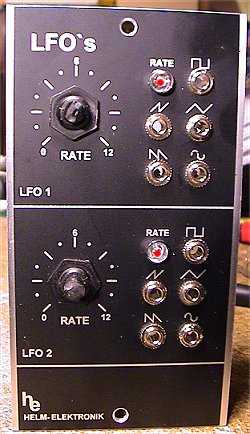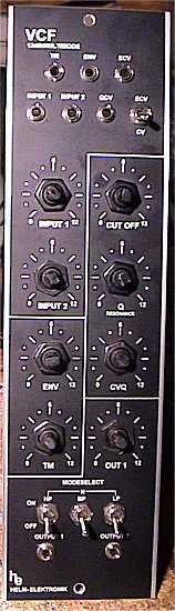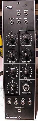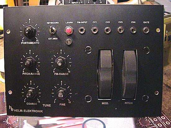 Potiknöpfe habe ich noch keine, die Spannzangenknöpfe decken die Muttern nicht ab, was unschön aussieht. Abgleich: den Offset-Abgleich bekomme ich nicht hin, der Rest machte keine Schwierigkeiten.. Nach der Anleitung im Buch soll die Spannung am Messpunkt möglichst bei 0V stehen bleiben, sie wandert aber immer wieder weg, wenn auch langsam. Auch der Tausch des 741 brachte keine Besserung, ich werde das Modul wohl zu Helm schicken und um Hilfe bitten. Erst nach einem Anruf bei Firma Helm konnte ich P5 abgleichen, der im Buch nicht erwähnt wird. Dort wird die Sinuskurve in eine möglichst "schöne" Form gebracht Bewertung: Die Kurvenformen sind leider abhängig von der Frequenz: Das Rechteck ist bei sehr niedrigen LFO-Raten nicht mehr als solches zu erkennen, hier sollte unbedingt nachgebessert werden weil sonst keine exakten Frequenzmodulationen möglich sind und der Ton jault statt die Tonhöhe plötzlich zu wechseln. Wünschenswert wäre eine Überarbeitung oder Neukonstruktion mit exakten Kurvenformen und spannungssteuerbarer LFO-Rate. Die maximale Amplitude beträgt nur 5 Volt, beim "idealen System" sollten alle Signal- und Steuerspannungen 10V erreichen. Wie sich das im Zusammenspiel mit anderen Baugruppen auswirkt. bleibt abzuwarten. |
