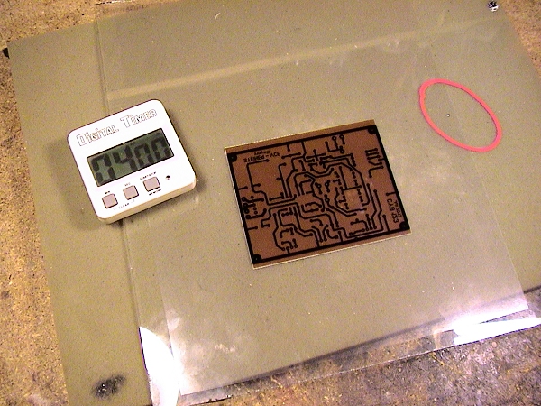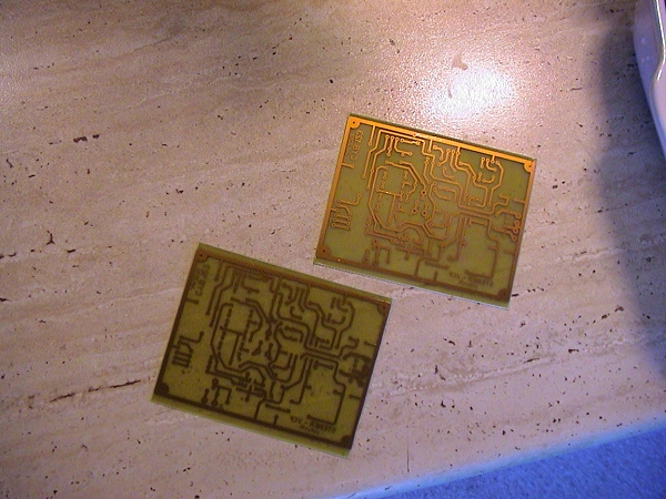 Anmerkung: Vor lauter Fotografiererei hatte ich den "Platinenfilm" seitenverkehrt aufgelegt. Nicht nachmachen. Ich hatte das tatsächlich erst bemerkt als ich die Platinen bestücken wollte. ;)