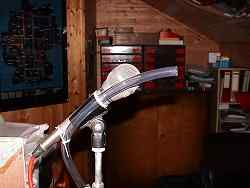 steckt man einen Plastikschlauch. Dieser Schlauch wird dann an einem Mikrofonständer