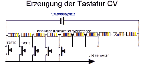 „höhere" Tasten drückt. Pro Taste steigt die Steuerspannung um exakt