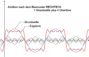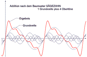 Rechteck und Sägezahn - Wellenformen. Diese Additionen können wir