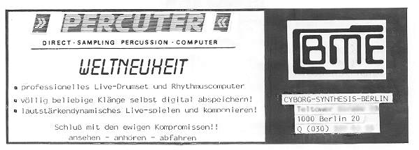 und erneut "brennen", das nur am Rande) Um nicht wieder in die gleiche Falle zu laufen und entwickelte Geräte wegen fehlender Produktionskapazitäten dann nicht verkaufen zu können, suchte Peter einen Hersteller und fand diesen dann auch in der Firma Dynacord. Hans Peter Baumann schreibt dazu: "Meine letzte Entwicklung, den Digitalen Drum Computer "PERCUTER" habe ich an ein namhaftes Unternehmen der Branche verkauft. Die Leute waren sehr seriös und aufgeschlossen, wir haben gut kooperiert und der PERCUTER war ein voller Erfolg." Das war sehr diplomatisch ausgedückt. wir hatten es damals anders erlebt und uns so unsere eigenen Gedanken gemacht. Die Firma D. ein "Deutsches Traditionsunternehmen", hat nun mal eigene Leute und die müssen beschäftigt werden, unabhängig davon ob es Sinn macht oder nicht. Peter lieferte D ein komplett entwickeltes und tadellos funktionierendes System ab, welches nur noch an das "Corporate Design" und in Details an eine Großserie angepasst werden musste. Ich meine damit ein etwas anderes Gehäuse usw. Was ich damals aus Erzählungen so hörte... noch heute sträuben sich bei mir die Haare wenn ich daran denke! Allein um ein Steckernetzteil zu entwicklen brauchten Dynacords Ingenieure mehrere Wochen, dann wurden Peters einwandfreie Leiterplatte verworfen. Dynacord hatte wohl gerade in ein neues Computer-Layout-System investiert und das sollte die Platine noch mal neu "erfinden". Es kam schließlich, wie es kommen musste: Die neu entwickelte Leiterplatte war voller Fehler, wichtige Chips, damals noch in nächtelanger Arbeit handprogrammierte Einzelstücke, gingen in Rauch auf. Die Katastrophen namen kein Ende und Peter, der zwischenzeitlich mit der ganzen Famile nach Luxemburg ausgewandert war, wohnte fast durchgehend in Straubing um immer wieder die Feuerwehr zu spielen. So wie wir das mitbekamen, litt damals auch die Familie darunter und letztlich wurde die Ehe geschieden, sicher war auch da der Streß mit Dynacord nicht ganz unschuldig. Auf der nächsten Musikmesse in Frankfurt konnten wir dann erleben wie absolut unprofessionell sich Dynacord (oops) verhielt, ich empfand das jedenfalls so. Der ganze Auftritt bestand fast nur aus Patzern und Pannen, es war nur noch peinlich denn die Firma ließ wirklich nichts aus! Am schlimmsten war, so fand ich, daß es die Geräte noch immer nicht zu kaufen gab. Man führte Vorserienmodelle und "Dummies" vor und setzte dadurch natürlich alle anderen Firmen die sich mit Drumcomputern befassten auf die Spur der neuen Ideen. Eigentlich hätte Dynacord auch gleich Baupläne verteilen können, das wäre dann wenigstens konsequent gewesen. Naja. Die Vorführung des Systems durch eine kleine Band zeigte einen sehr guten und ebenso lauten Gitarristen, das Drumcomputersystem hat man nur manchmal durchgehört, der Drummer war auch nur sehr mittelmäßig. Dann bot Dynacord kleine Zusatzgeräte für Schlagzeuger an, die jeweils nur 1 oder 2 Sounds ablieferten. (die gab es dann aber tatsächlich schon zu kaufen!) An "Ausprobiertischen" hingen dann 4 oder 5 dieser Geräte an jeweils einem popeligen Stereo-Verstärker an dem wiederum 5 Kopfhörerpaare paralell angeschlossen waren. Schon innerhalb der ersten Stunde waren die meisten Kopfhörer "zerschossen" aber selbst wenn man einen bekam, in dem es nicht nur krachte, hörte man stets 4 oder 5 Leute die gleichzeitig auf die Geräte eindroschen! Wie kann man sich nur so einen Schrott ausdenken!? Trotz(!) Dynacord hat sich aber das Percuter-System aber verkauft. Ein echter Renner wurde es aber nicht weil im Folgejahr natürlich fast jede Firma, zu deren Programm auch Drumcomputer gehören, sowas in der Art anboten. |